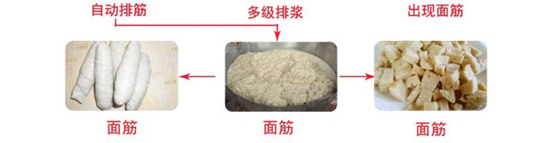 3、洗面筋机在洗面时无需和面,洗面机可以自动完成整个和面洗面过程,操作人员只需将面粉和水放入洗面仓内,然后开启洗面机就可以了.